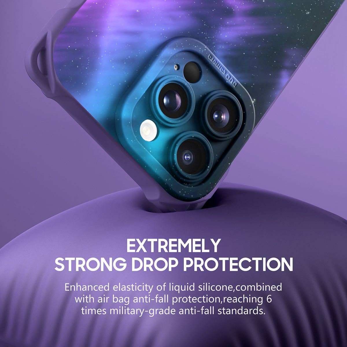 Enhanced elasticity of liquid silicone, combined with airbag anti-drop protection, effectively passed the 6.5-meter drop test and reached 6 times the military-grade drop protection standard.