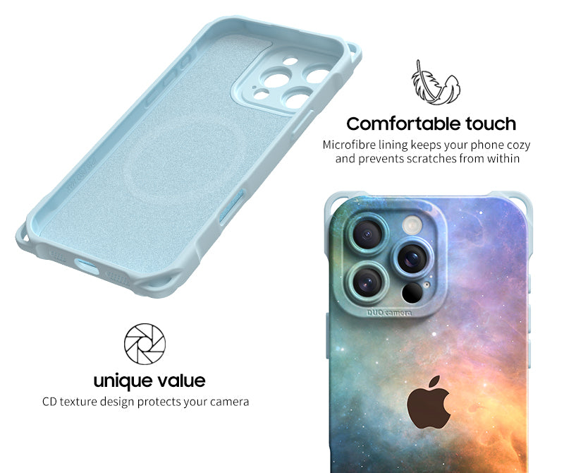 Achieving integrated protection for mobile phone cameras. The hole position of the camera is designed with CD texture, which has a visual impact and looks more beautiful.Microfibre lining keeps your phone cozy and prevents scratches from within.
