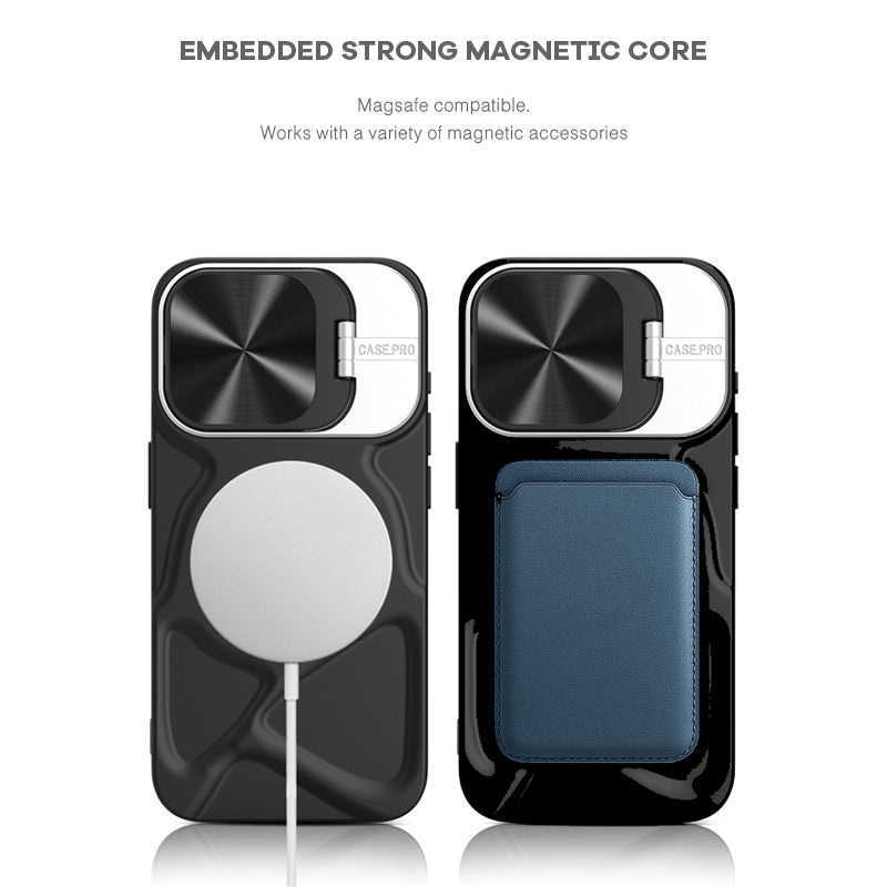 Using natural soft silicone material, adding a lens cover, double protection, anti-drop and anti-scratch. It can be folded and used as a mobile phone holder. Supports MagSafe, 38 magnetic beads have strong adsorption, no need to worry about the phone falling.