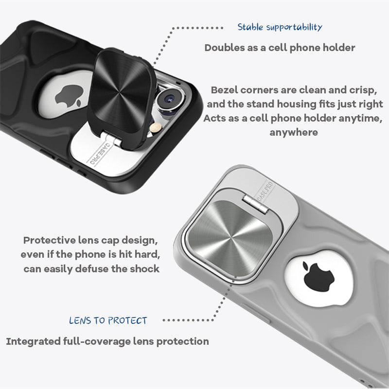 Why is this protective case truly all-round protection? Because a layer of lens bracket cover is added to the lens to prevent scratches and damage to the lens, and it can also be used as a mobile phone holder, and the support is very stable.