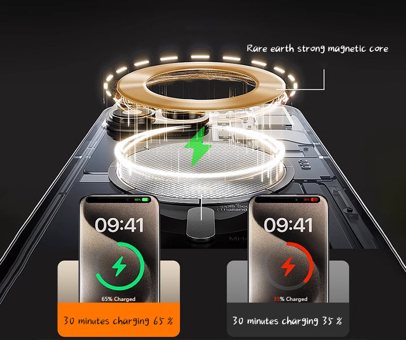 The combination of rare earth strong magnet + magnetic calibration meter. Automatic calibration is formed to avoid the reduction of wireless charging efficiency due to unreasonable placement.