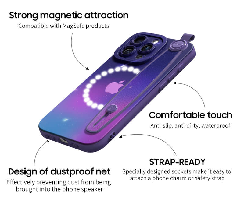 Built In Super Strong MagSafe Core, Enhances Adsorption, Not Easy To Fall Off. Comfortable Texture. Built In Dustproof Holes. Effectively Isolate Dust.
