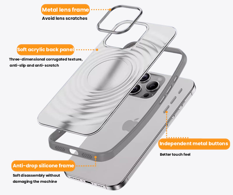 The back panel is made of acrylic material, which is explosion-proof and drop-proof. The ripple design, layer by layer, conforms to the palm design. It feels like it is adsorbed on the hand.