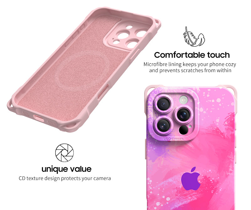 Achieving integrated protection for mobile phone cameras. The hole position of the camera is designed with CD texture, which has a visual impact and looks more beautiful.Microfibre lining keeps your phone cozy and prevents scratches from within.